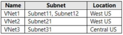 You have an Azure subscription that contains the virtual networks shown in the following table.