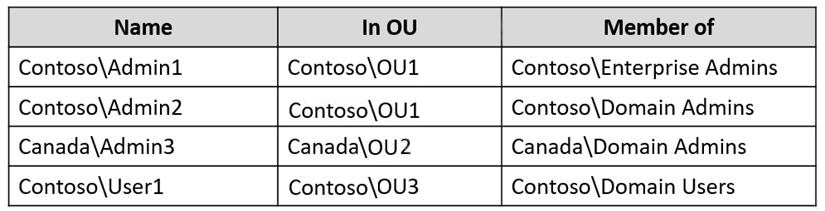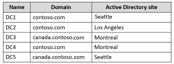 The forest contains the domain controllers shown in the following table.