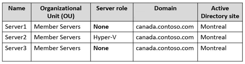 The network contains the servers shown in the following table.