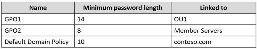 The contoso.com domain has the Group Policies Objects (GPOs) shown in the following table.