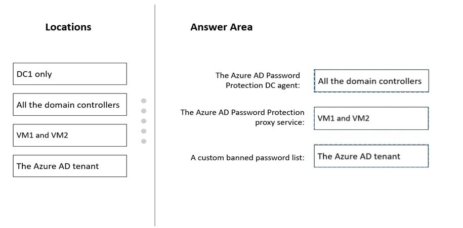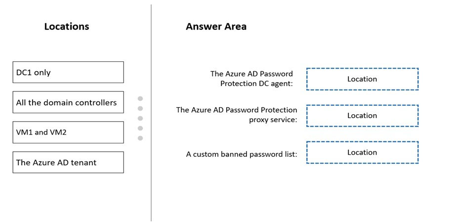 Where should you configure the components for Azure AD Password Protection? To answer, drag the appropriate components to the correct locations. Each component may be used once, more than once, or not at all. You may need to drag the split bar between panes or scroll to view content.