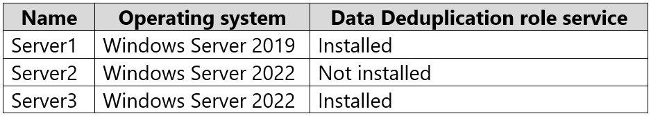 Server3 contains a data disk named Disk1 that has Data Deduplication installed. Disk1 contains the files shown in the following table.