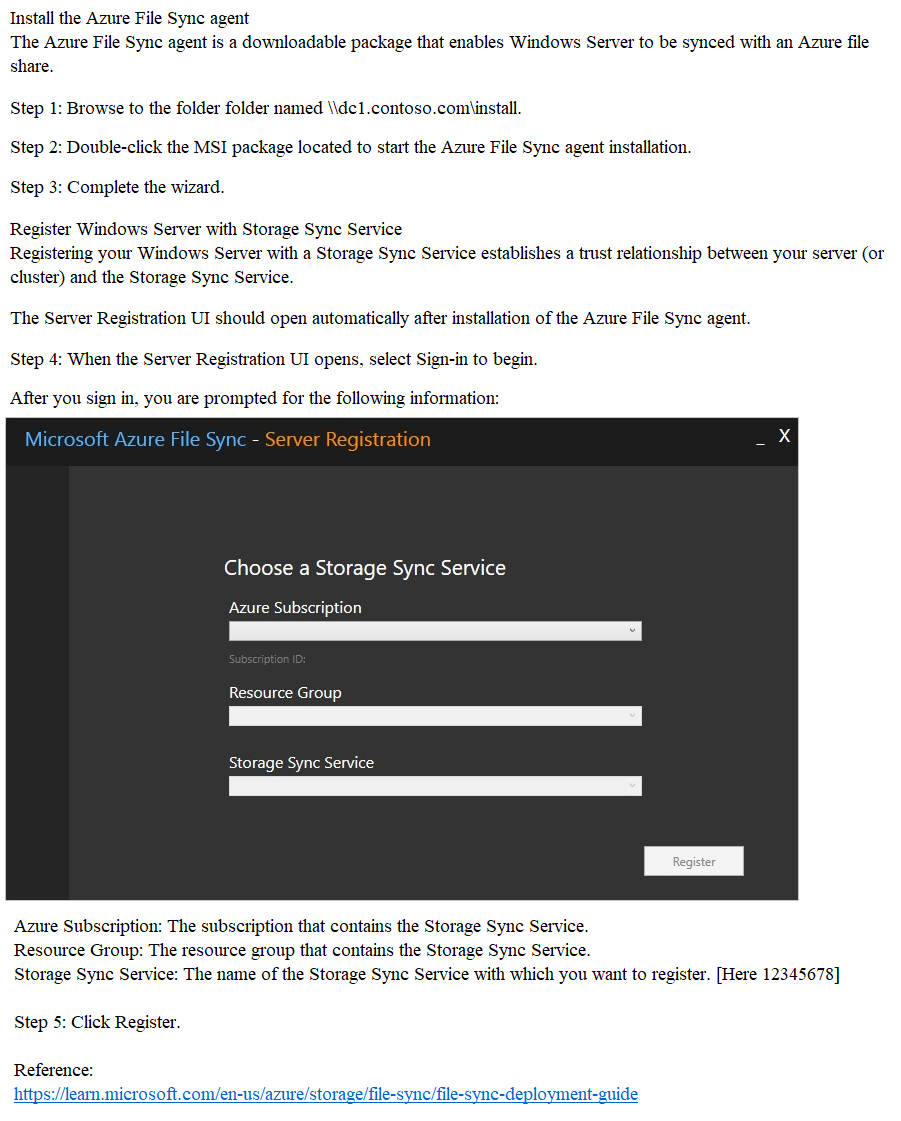 - Azure Subscription: The subscription that contains the Storage Sync Service (see Deploy the Storage Sync Service).