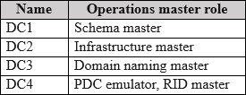 You have an Active Directory Domain Services (AD DS) domain that contains the domain controllers shown in the following table.