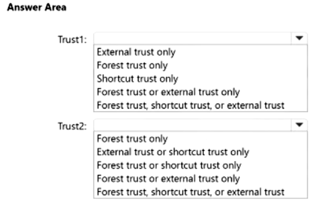 Which type of trust can you use for Trust1 and Trust2? To answer, select the appropriate options in the answer area.