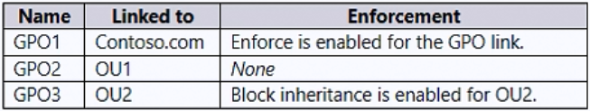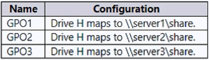 The domain has the Group Policy Objects (GPOs) shown in the following table.