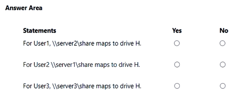 User 3 is in OU2, GPO3 has \\Server3\share and GPO 3 is attached to OU2 directly, therefore \\Server3\share maps to User3
