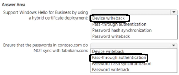 - Ensure that the passwords in contoso.com do NOT sync to fabnkam.com.