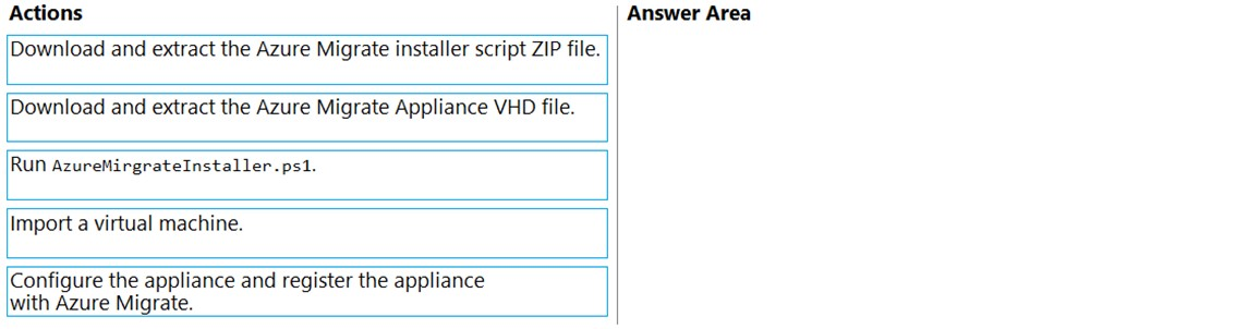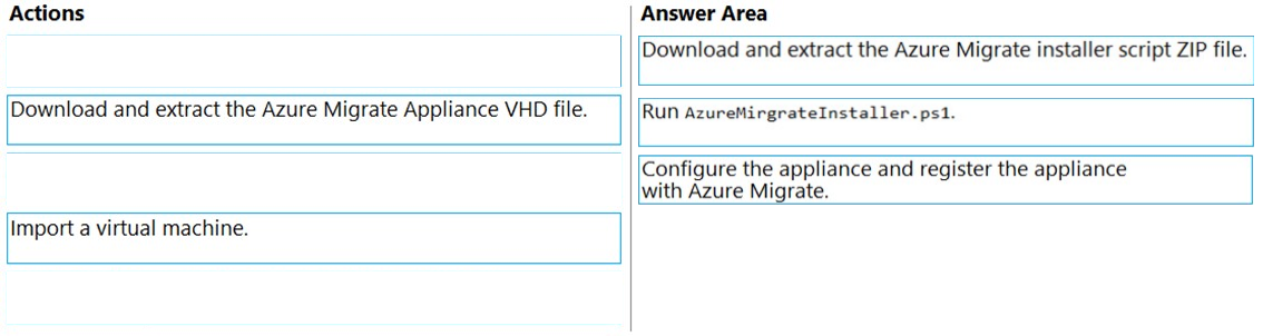 The provided answer is correct. As per the below article, following are key points. https://learn.microsoft.com/en-us/azure/migrate/tutorial-discover-physical To set up the appliance, you: 1. Provide an appliance name and generate a project key in the portal. 2. Download a zipped file with the Azure Migrate installer script from the Azure portal. 3. Extract the contents from the zipped file. Launch the PowerShell console with administrative privileges. 4. Execute the PowerShell script to launch the appliance configuration manager. 5. Configure the appliance for the first time, and register it with the project using the project key.