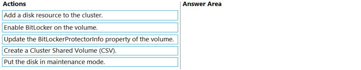 In which order should you perform the actions? To answer, move all actions from the list of actions to the answer area and arrange them in the correct order.