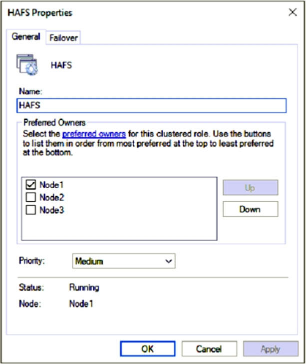 A File Server for general use cluster role named HAFS is configured as shown in the General exhibit. (Click the General tab.)