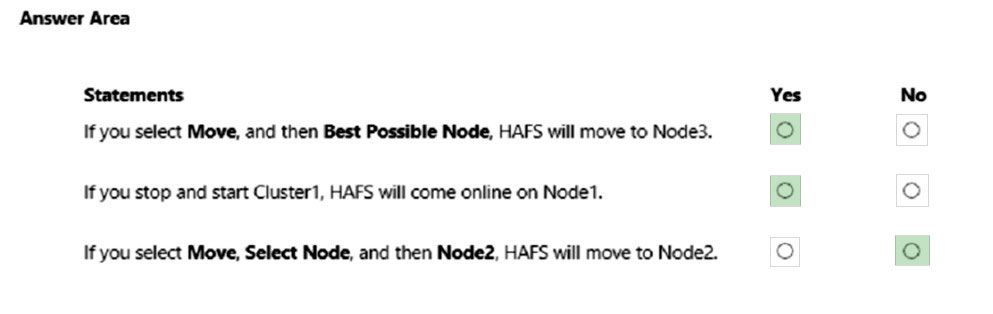 Box 1: Yes - HAFS will move from Node1 to Node3 if we test failover for the cluster.