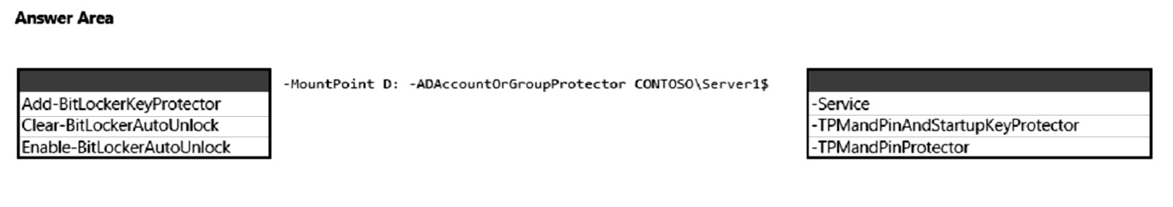 You need to ensure that volume D will be unlocked automatically when Server1 restarts.