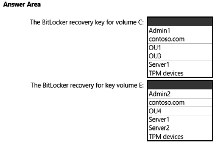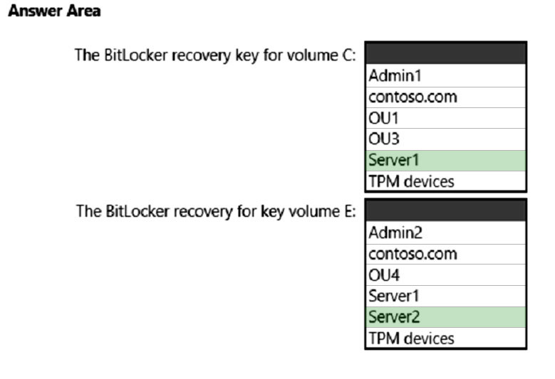 1. Admin1 turns on BitLocker Drive Encryption (BitLocker) for volume C on Server1.