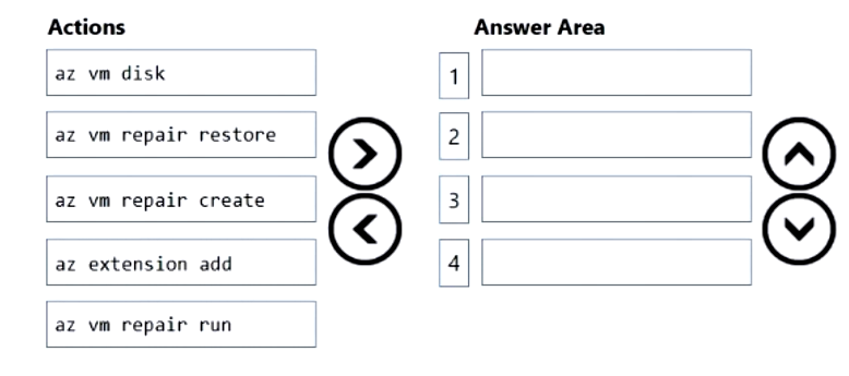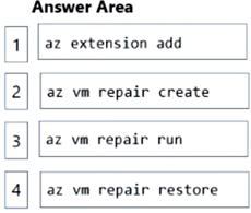 Correct! Follow these steps to troubleshoot the VM issue: Launch Azure Cloud Shell Run az extension add/update. Run az vm repair create. Run az vm repair run, or perform mitigation steps. Run az vm repair restore. https://learn.microsoft.com/en-us/troubleshoot/azure/virtual-machines/windows/repair-windows-vm-using-azure-virtual-machine-repair-commands