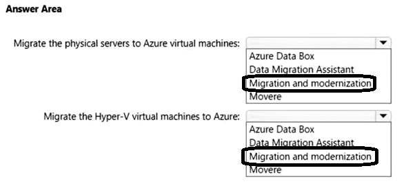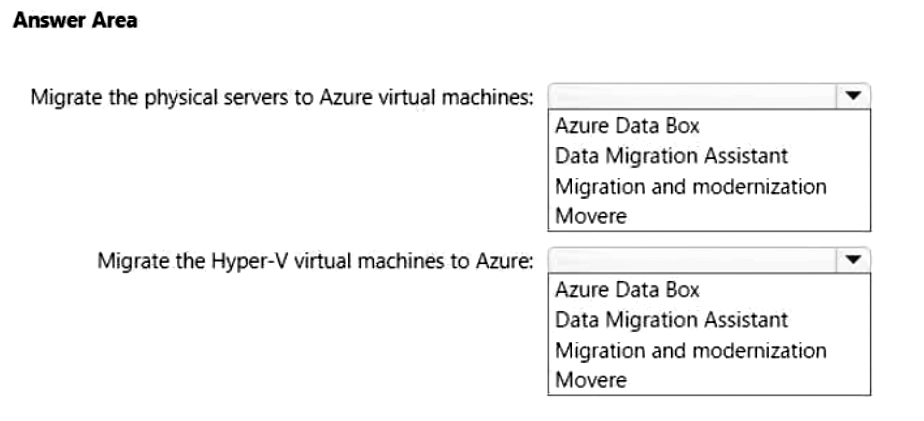 Your on-premises datacenter contains physical servers and Hyper-V virtual machines.