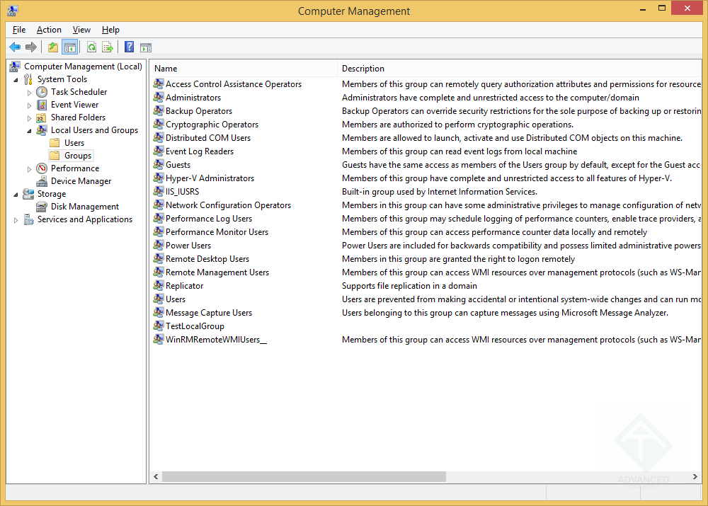 Встроенные группы будут стоять особняком – они нужны для предоставления прав учётным записям, исключительно – т.е. ни включать их друг в друга (эта операция будет называться group nesting), ни включать в них обычные локальные группы будет нельзя. Вы можете убедиться в этом, запросив на локальной системе список тех, кто может быть добавлен во встроенную группу: