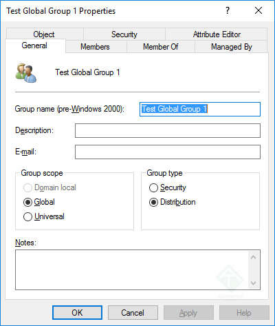 Active Directory добавляет целую пачку нового – теперь вместо одиночных доменов, связанных ниточками-трастами, есть пачки дружественных друг к другу доменов, называемые лесами. Появляется возможность изменять атрибуты объектов, хранимых в Active Directory, и создавать новые типы объектов. Все эти добавления нуждаются в изменениях в работе групп. Первым делом смотрим на новое разделение групп – на Security и Distribution.