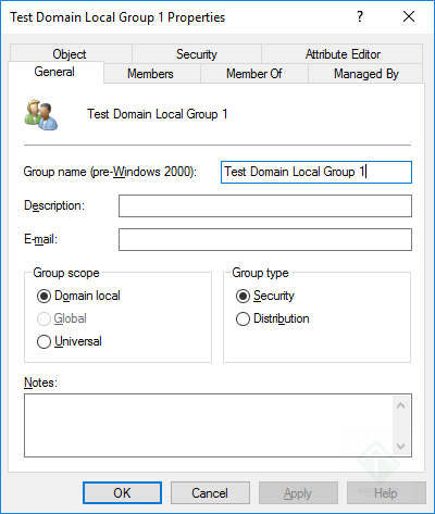 Domain Local же, как наследники “обычных локальных групп”, данного ограничения не имеют – их SID ведь содержит компонент с идентификатором домена – а, следовательно, уникальность в сравнении с локальными группами каждой входящей в домен системы поддерживается. Поэтому вы можете добавить, например, в локальную группу Administrators группу из домена, у которой будет тип Domain Local – никакого потенциального конфликта тут не будет. SID’ы этих групп, кстати, не поменялись при превращении сервера в первый контроллер домена в новом домене – поэтому если вы, например, создали локальную группу и выдали ей права на какой-то папке, то после DC promotion эта группа станет Domain Local и все её права сохранятся – ведь SID тот же.