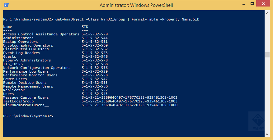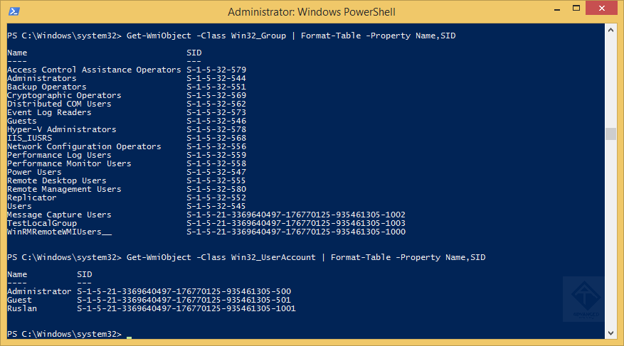 Просмотр SID у локальных групп - разница между builtin и обычными группами(кликните для увеличения до 877 px на 451 px)