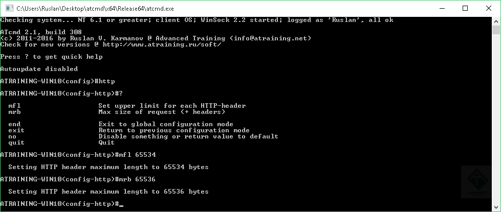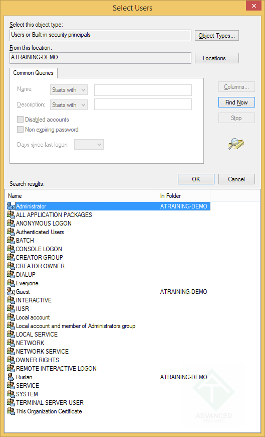 Если что, ATRAINING-DEMO – это имя локальной машины, это обычная Windows 8.1, разве что на ней заведена учётка пользователя с именем Ruslan.