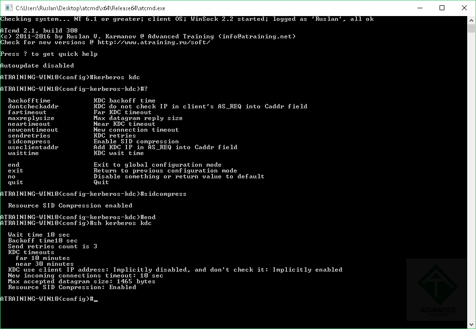 Технически (я не буду углубляться в дебри кербероса, это чрезвычайно интересная, но масштабная тема) всё реализуется несложно – если KDC поддерживает сжатие, то он проверяет бит Resource-SID-compression-disabled в поле KerbSupportedEncryptionTypes у своей учётки и у учётной записи krbtgt; если нигде этот бит не установлен в единицу, то KDC формирует маркер доступа, заполнив в структуре KERB_VALIDATION_INFO поле ResourceGroupDomainSid SID’ом текущего домена, и добавляя поле ResourceGroupIds, указывающее на массив “укороченных” SID’ов (которые на самом деле просто RID’ы). В финале в поле ResourceGroupCount пишется суммарное количество записей, и всё готово.