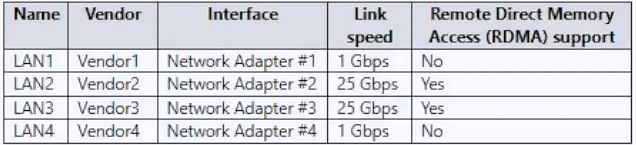 You have a server that runs Windows Server 2022 and has the network adapters shown in the following table.