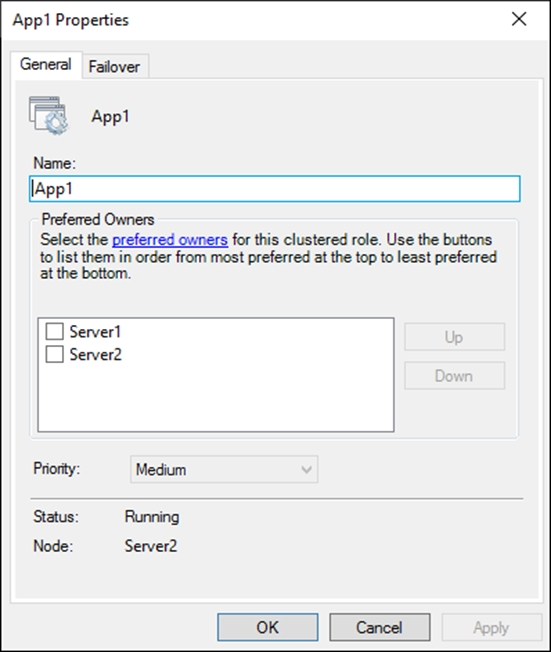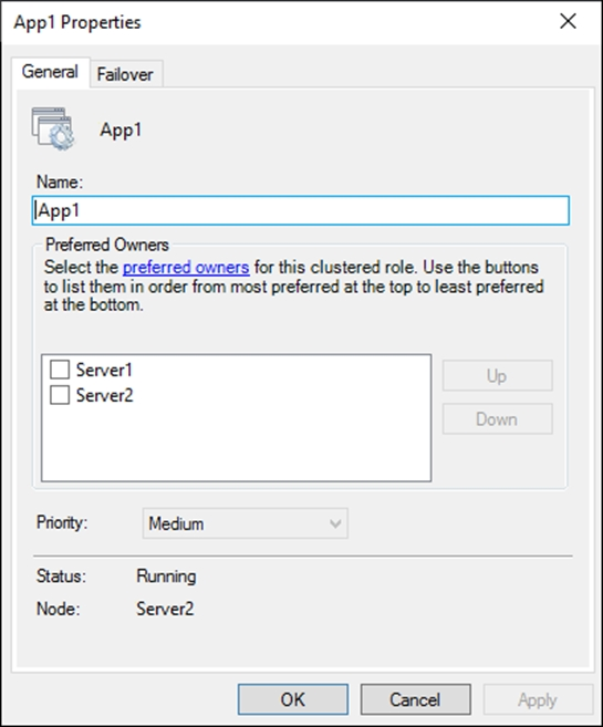The Failover tab in App1 Properties is shown in the Failover exhibit. (Click the Failover tab.)