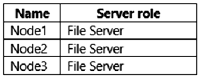 You have a failover cluster named Cluster1 that contains the nodes shown in the following table.