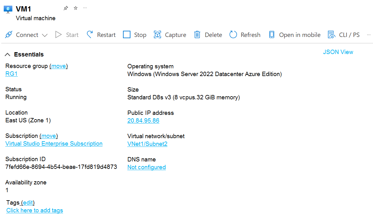 - Connected to: Vnet1/Subnet1