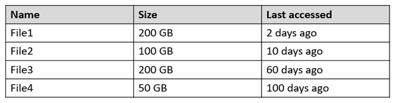 A year ago, you configured E:\Data on Server1 to sync by using Azure File Sync. The files that are visible in E:\Data are shown in the following table.