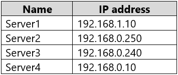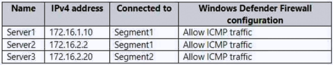 Your on-premises network contains two subnets. The subnets contain servers that run Windows Server as shown in the following table.