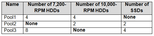 You have a server named Server1 that runs Windows Server. Server1 has the storage pools shown in the following table.